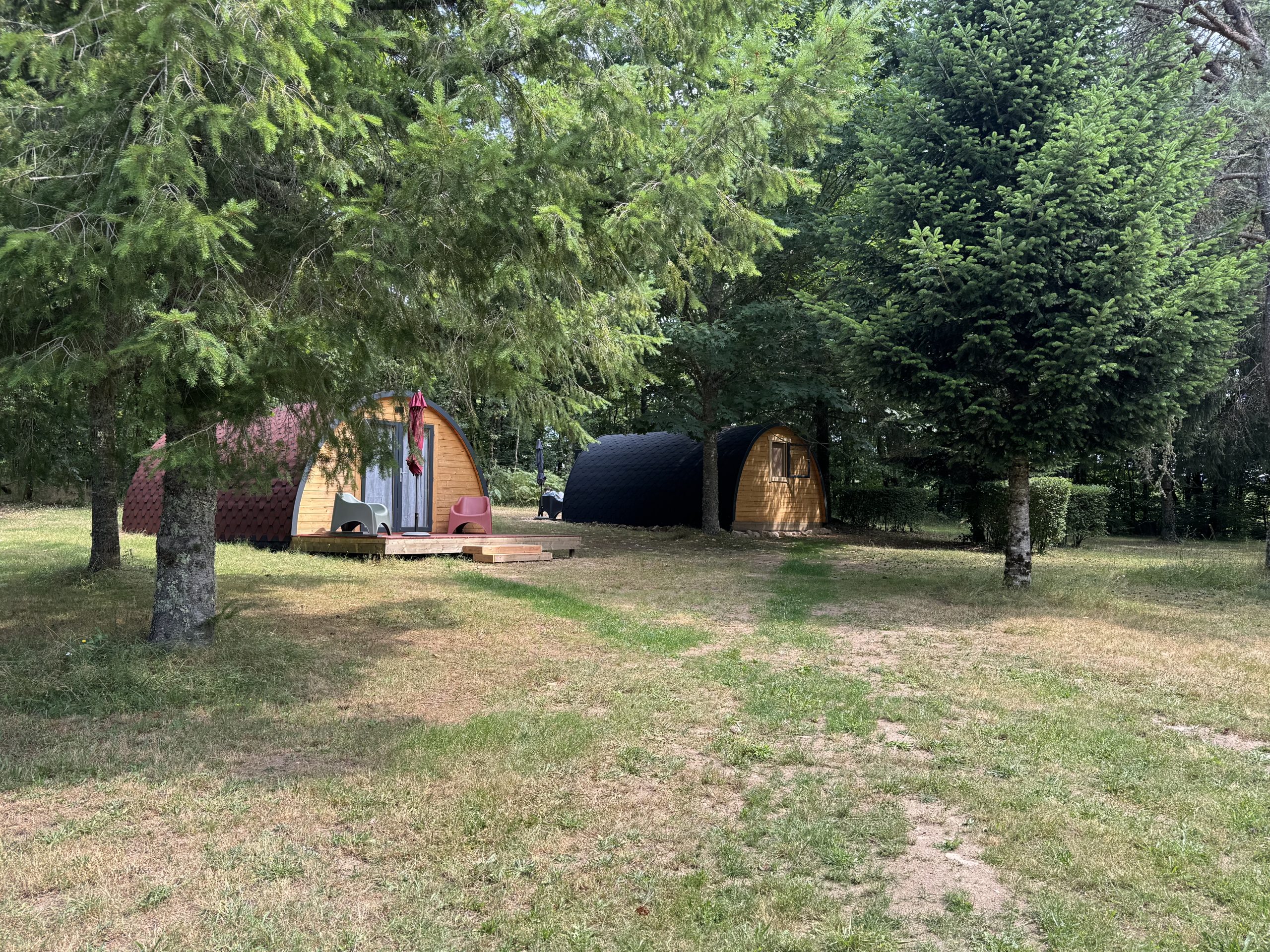 Le camping propose des emplacements spacieux et non délimités, vous permettant de choisir votre emplacement idéal, à l'orée de la forêt ou sur une prairie ensoleillée. Chaque emplacement est équipé d'un branchement électrique et d'une connexion Wi-Fi gratuite. Des emplacements spéciaux sont également disponibles pour les randonneurs et les cyclistes de passage. Pour un séjour alliant confort et originalité, découvrez nos Nichoirs (Pods) : ces cabanes en bois, situées à l'orée de la forêt, sont conçues pour accueillir 4 personnes.