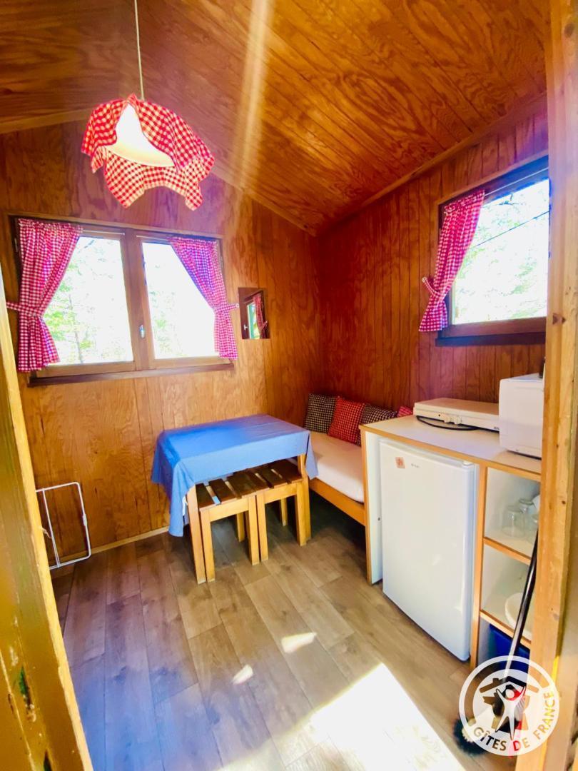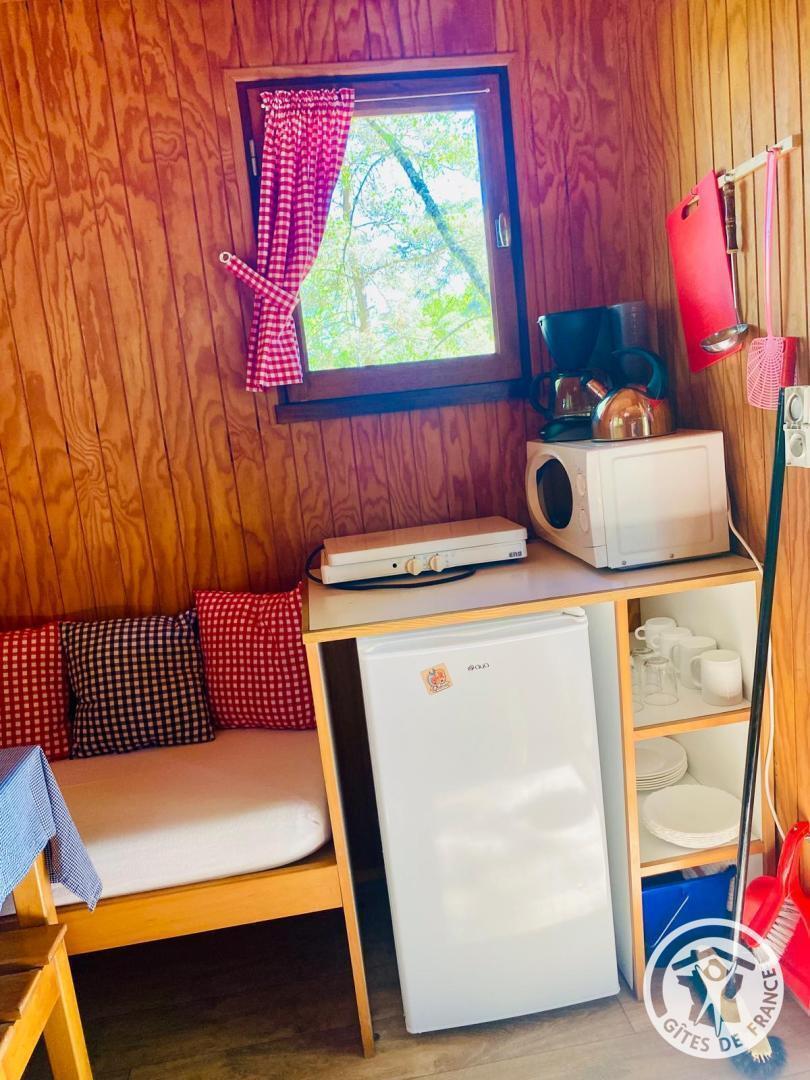 Situé dans un petit camping familial, calme et convivial, ce mini chalet vous accueille dans un environnement boisé, au cœur d'une nature préservée. Niché à deux pas d'un étang paisible, ce lieu est une halte appréciée des randonneurs qui souhaitent passer une nuit reposante entre deux étapes. Vous profiterez ici du calme, de l'air pur et d'un accès facile aux sentiers de randonnée environnants. Ce camping est idéal pour une pause nature, que ce soit à pied, à vélo ou simplement pour se détendre. A découvrir à proximité : le château de Sédières, les cascades de Gimel, le viaduc des Rochers Noirs, ou encore le lac de la Valette pour une baignade en pleine nature. - Un seul chien est autorisé afin de préserver la tranquillité du lieu.