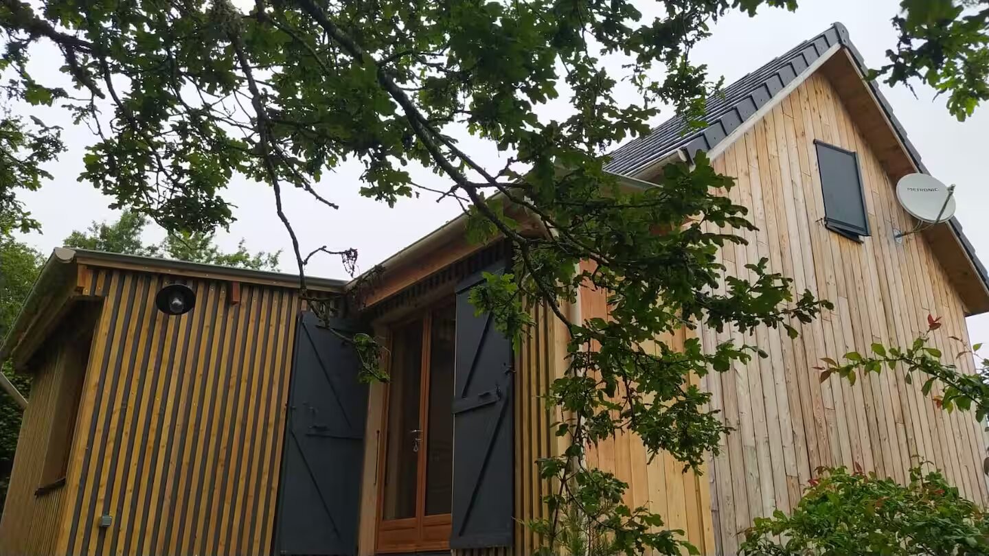 Construit en 2021 et situé à l'entrée du Parc Naturel Régional, sur les hauteurs du village médiéval de Corrèze, le P'tit Sapin peut accueillir jusqu'à 5 personnes.