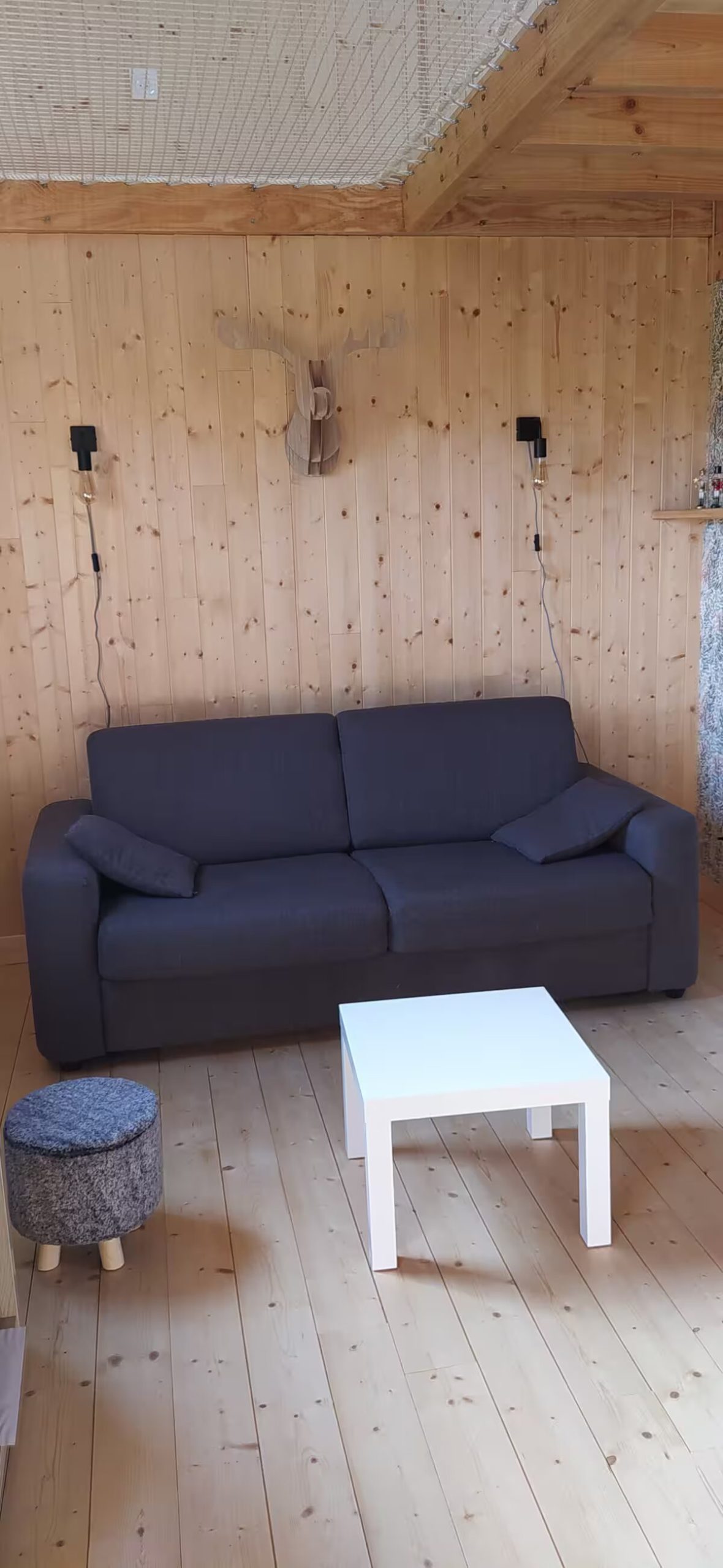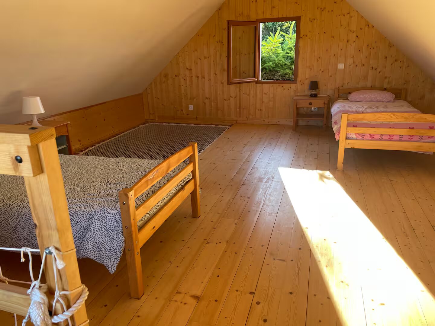 A l'étage, vous trouverez deux lits d'une personne avec filet intérieur pour vous détendre.