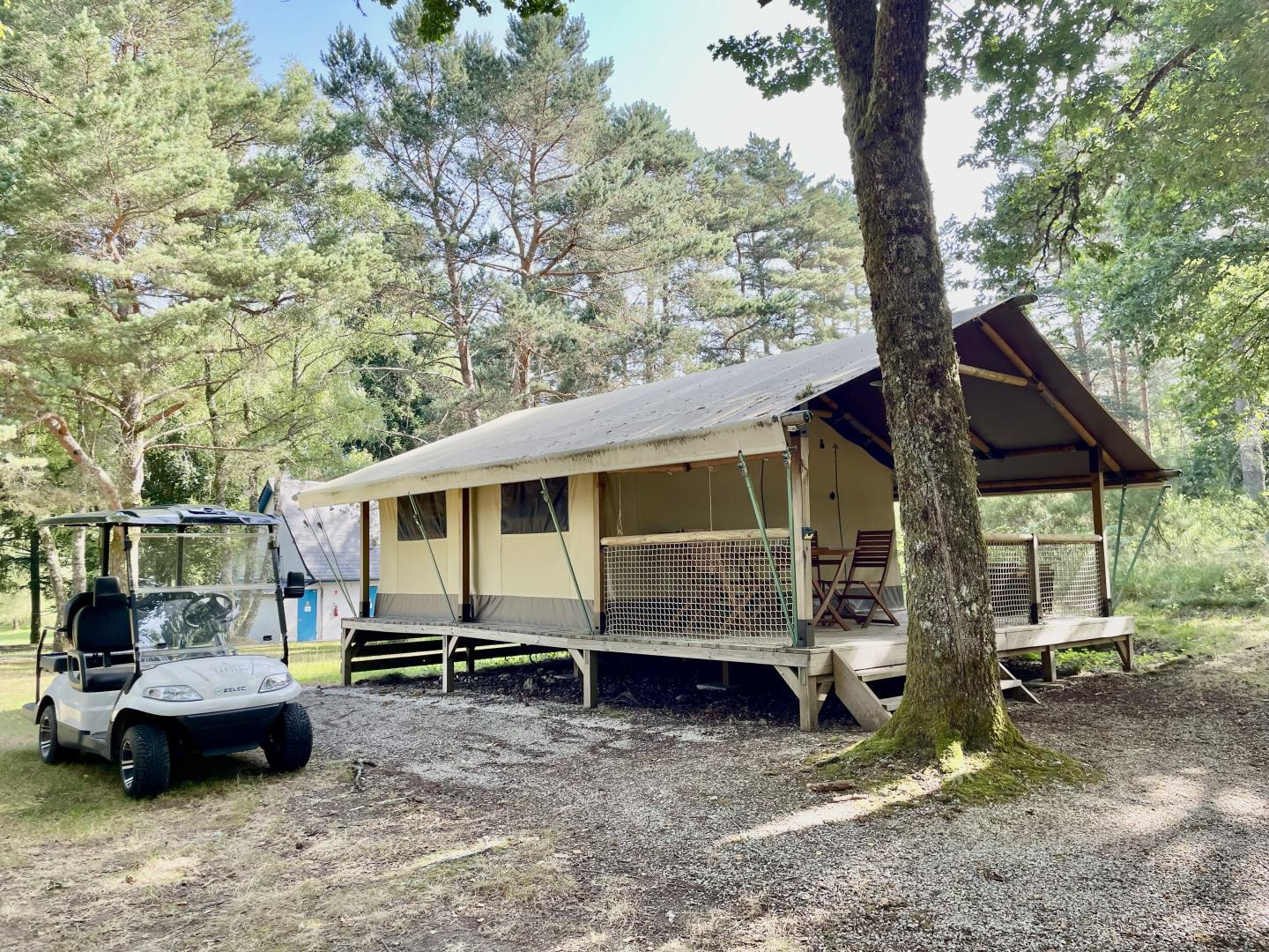 Offrez-vous une escapade nature inoubliable dans une tente SAFARI tout confort, au cœur du Domaine des Étangs de Taysse. Nichée dans un cadre préservé, entre forêt et étangs, cette tente entièrement équipée est parfaite pour vivre un glamping authentique. Vous y trouverez de véritables lits, une cuisine aménagée, une salle d'eau dotée d'une douche et de toilettes, ainsi qu'une terrasse couverte pour profiter du grand air. Sur place, de nombreuses activités s'offrent à vous : baignade dans l'étang, canoë, paddle, pêche, randonnées... Le domaine propose également un bistrot convivial, une petite épicerie, un service de restauration et des animations durant la saison. À proximité, partez à la découverte des plus beaux villages de France tels que Collonges-la-Rouge, Turenne ou Curemonte. Ne manquez pas non plus les magnifiques sites naturels et historiques comme les cascades de Gimel, le ...