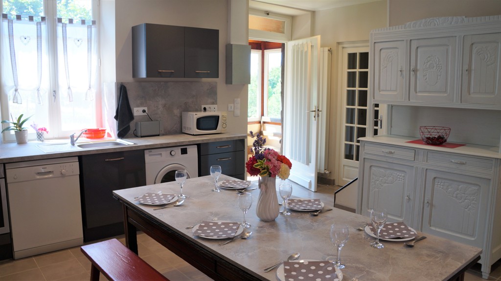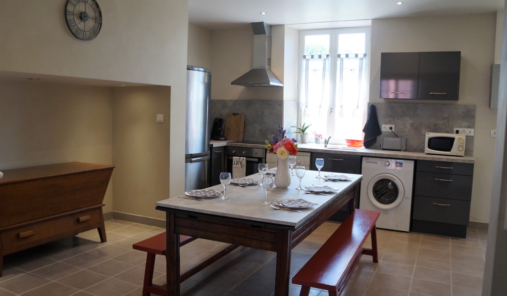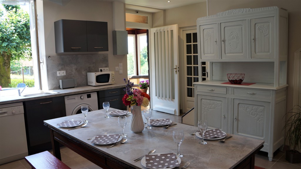 Cette maison de famille dotée d'une vue superbe sur la campagne a été entièrement rénovée pour l'offrir à la location aux amateurs de nature et de grands espaces. Passée la petite entrée protégée par une verrière, elle dispose d'une belle pièce de vie avec une cuisine toute-équipée (lave-vaisselle, lave-linge, fours, frigo, petit électroménager...), un salon lumineux et cosy (TV, WIFI), 3 chambres (2 lits 140, 2 lits superposés 90, linge fourni), une salle d'eau (2 vasques, douche à l'italienne, linge fourni), un WC indépendant. L'ensemble se complète d'un jardin clos et arboré, idéal pour manger dehors aux beaux jours et se reposer dans un environnement calme.