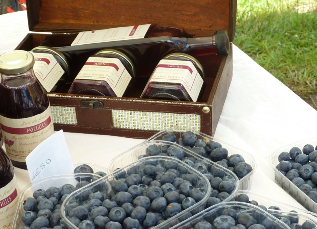 Productions de la ferme : Petits fruits rouges : myrtilles, framboises, mûres, groseilles, cassis et fraises. Vente en frais et produits